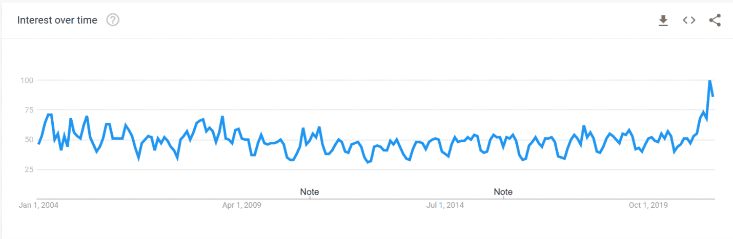 When everyone including your friends and neighbors believe inflation is going to get out of control will they all be right? Look at the Google search trends for the word ‘Inflation’ chart below going back to 2004 see the recent spike?