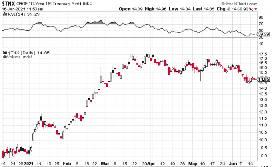 The reality is that interest rates have actually been coming down see the US Treasury 10 year note below which stands today at 1.485% :