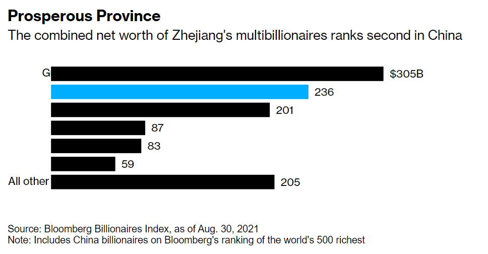 The plan also calls for wealthy entrepreneurs to donate more of their wealth to society. Zhejiang is home to at least 10 multi-billionaires, according to data collected by Bloomberg, with a combined net worth of $236 billion.