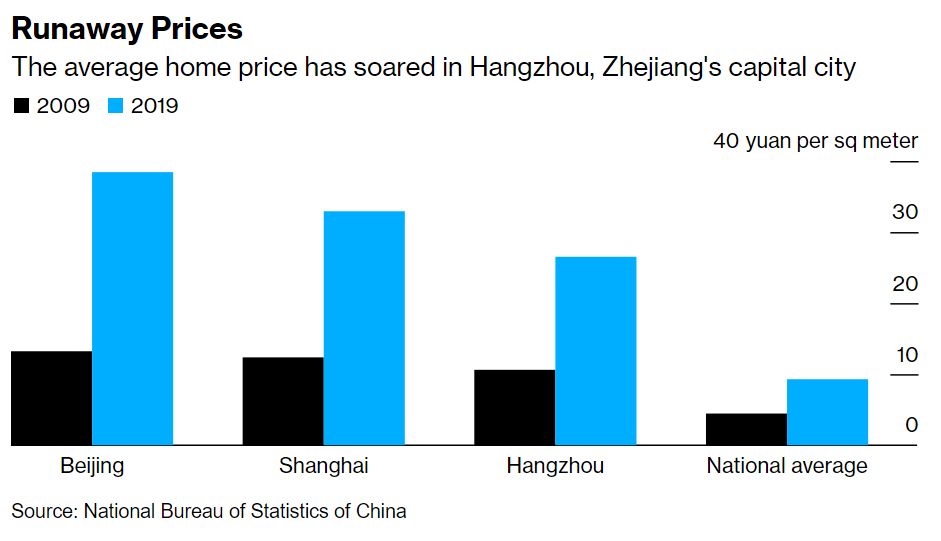 Rising housing costs have been a source of discontent across China since the country created a commercial market two decades ago. Zhejiang, where real estate prices grew at an average annual rate of about 6% over the last decade, doesn’t want to see homes get any more expensive.