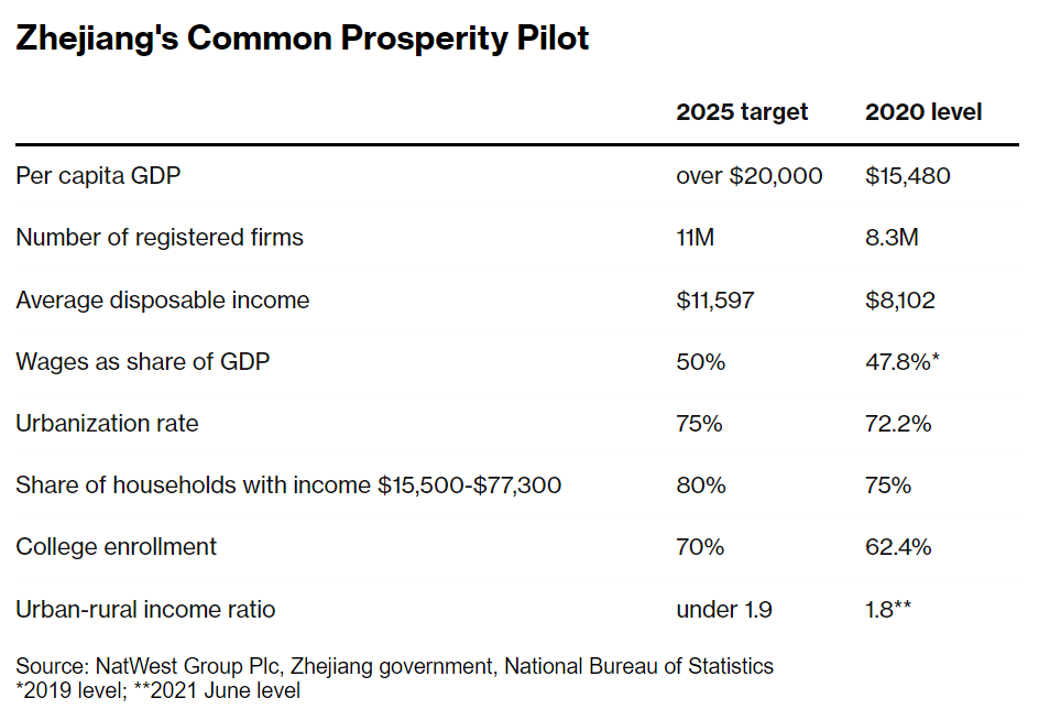 In fact, there is already evidence of how far Beijing intends to go. In June, the national government designated Zhejiang, China’s third-richest province, to pilot policies designed to reduce inequality, and in July, it released detailed targets.