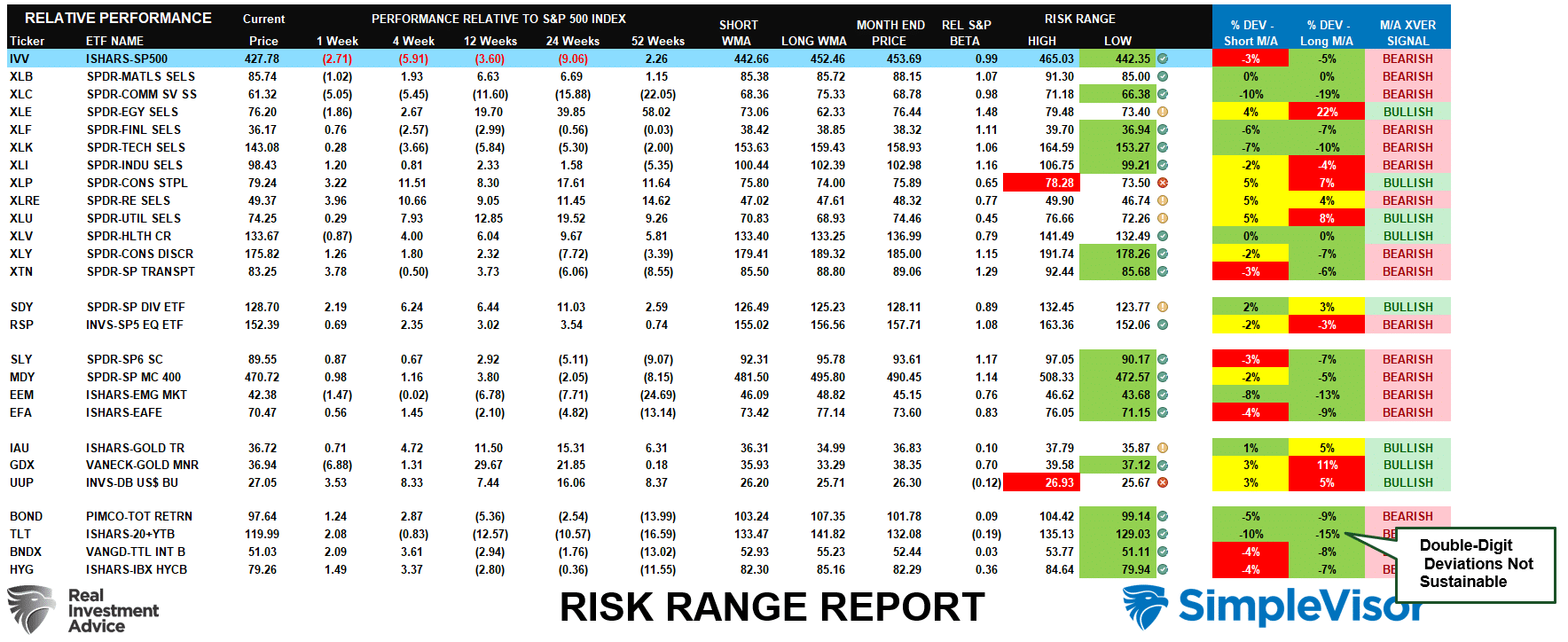 - The risk range is a function of the month-end closing price and the “beta” of the sector or market. (Ranges reset on the 1st of each month)