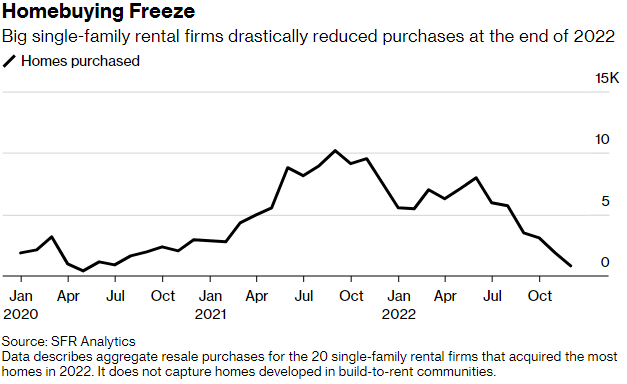 Wall Street-backed landlords have cut jobs and slowed purchases with high borrowing costs weighing on the housing market.