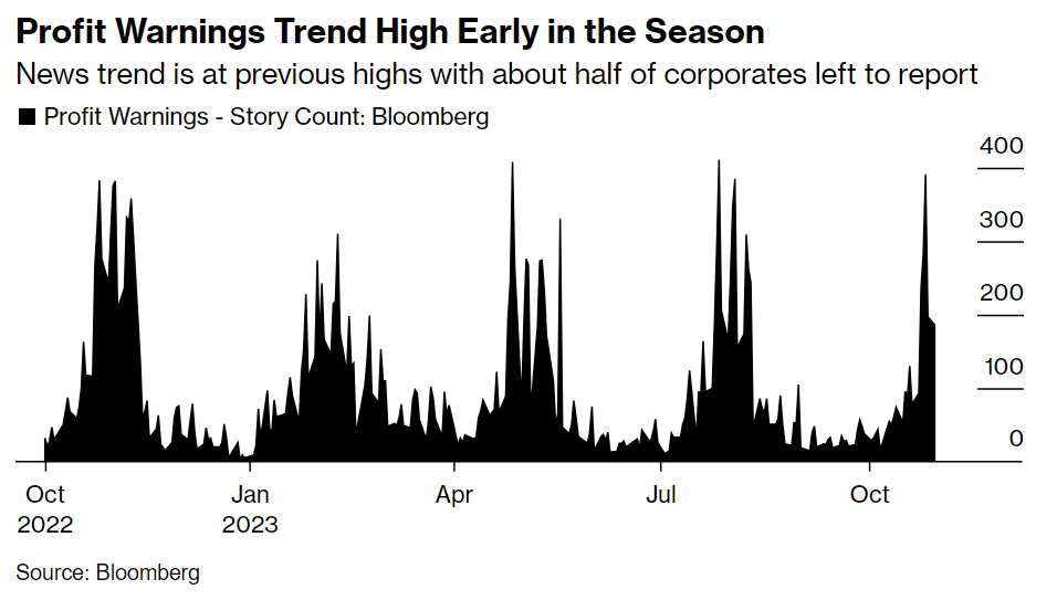 - Profit warning news trend is at high only halfway into season