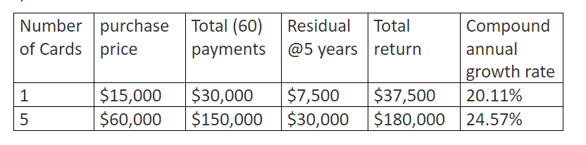 The table below contains the projected cash flows and returns for the purchase of cards.